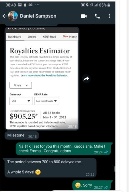 Thank you for visiting this page.My name is Emele Obinna, and I'll show you how to make money with just your smartphone by publishing your books on Amazon KDP even if you're not a writer.You may be aware that the current value of one dollar exceeds N800.The fact that it will continue to rise is possible.In the face of rising inflation, your monthly earnings of $50,000 to $100,000 may not be sufficient to meet your needs and desires.But you need to find a way to make money in US dollars.I will demonstrate the exact method I developed for earning money from Amazon by writing a 10- to 25-page book in 30 to 90 minutes per day.Additionally, how the same book continues to generate money for me throughout the day and night, even while I am sleeping.What is the KDP?Self-publishing eBooks, paperbacks, and hardcover books is free with KDP.We give you direct access to your book on Amazon and let you make a page with your book's product description.Additionally, it enables you to distribute your book globally, making it more accessible to readers worldwide.When you publish with KDP, you get full ownership of your book, which is not typically the case with traditional publishers.What kinds of content are supported by KDP?Using KDP, you can publish books in paperback as well as eBooks (Kindle).However, KDP is frequently used to publish the following types of content:Books for children, series of books, comic books, cookbooks, journals, poetry, and textbooks even blank (empty) books.Now I Can Finally Revealed:A brand-new, straightforward "training" on how to begin receiving monthly salaries of 4 to 5 figures from Amazon.